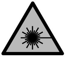 | Не го насочувајте ласерскиот зрак кон лица или животни и немојте и Вие самите да гледате во директниот или рефлектирачкиот ласерски зрак. Така може да ги заслепите лицата, да предизвикате несреќи или да ги оштетите очите. |