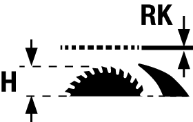 Note the thickness of the riving knife RK and the maximum possible workpiece height H. See also the "Technical Data" section. |