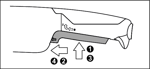 To lock the pressed on/off switch (3), slide the on/off switch (3) further forwards ➍.